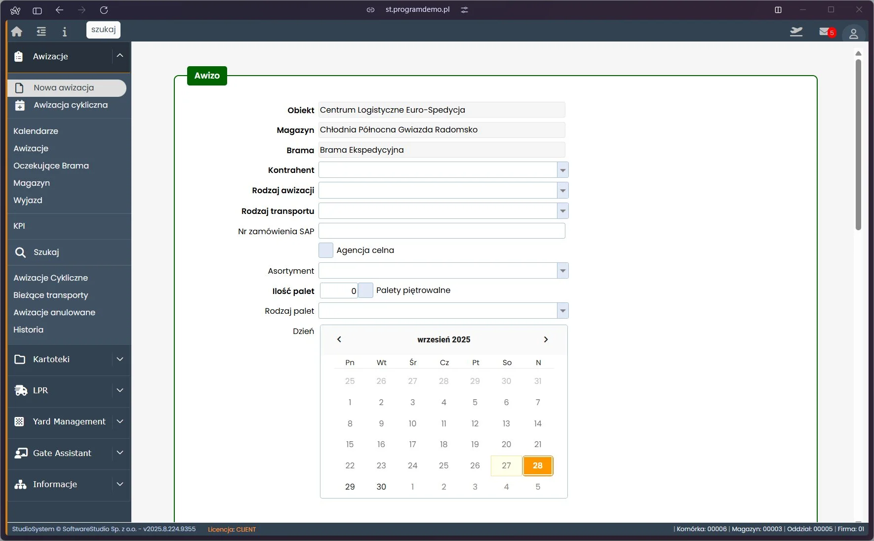 Awizacja dostaw to proces wcześniejszego zgłaszania i rejestrowania planowanych transportów do magazynu lub zakładu produkcyjnego, obejmujący wskazanie terminu, rodzaju ładunku, danych pojazdu i kierowcy. Dzięki awizacji pracownicy magazynu mogą przygotować się do przyjęcia towaru z wyprzedzeniem, przydzielić odpowiednią rampę i zaplanować zasoby ludzkie. W nowoczesnych systemach klasy YMS, takich jak Studio VSS.net, awizacja odbywa się online przez przeglądarkę internetową, a obowiązek jej tworzenia może być delegowany bezpośrednio do przewoźnika lub kontrahenta. Zautomatyzowana awizacja eliminuje zatory przy bramach wjazdowych i redukuje przestoje w całym łańcuchu dostaw.