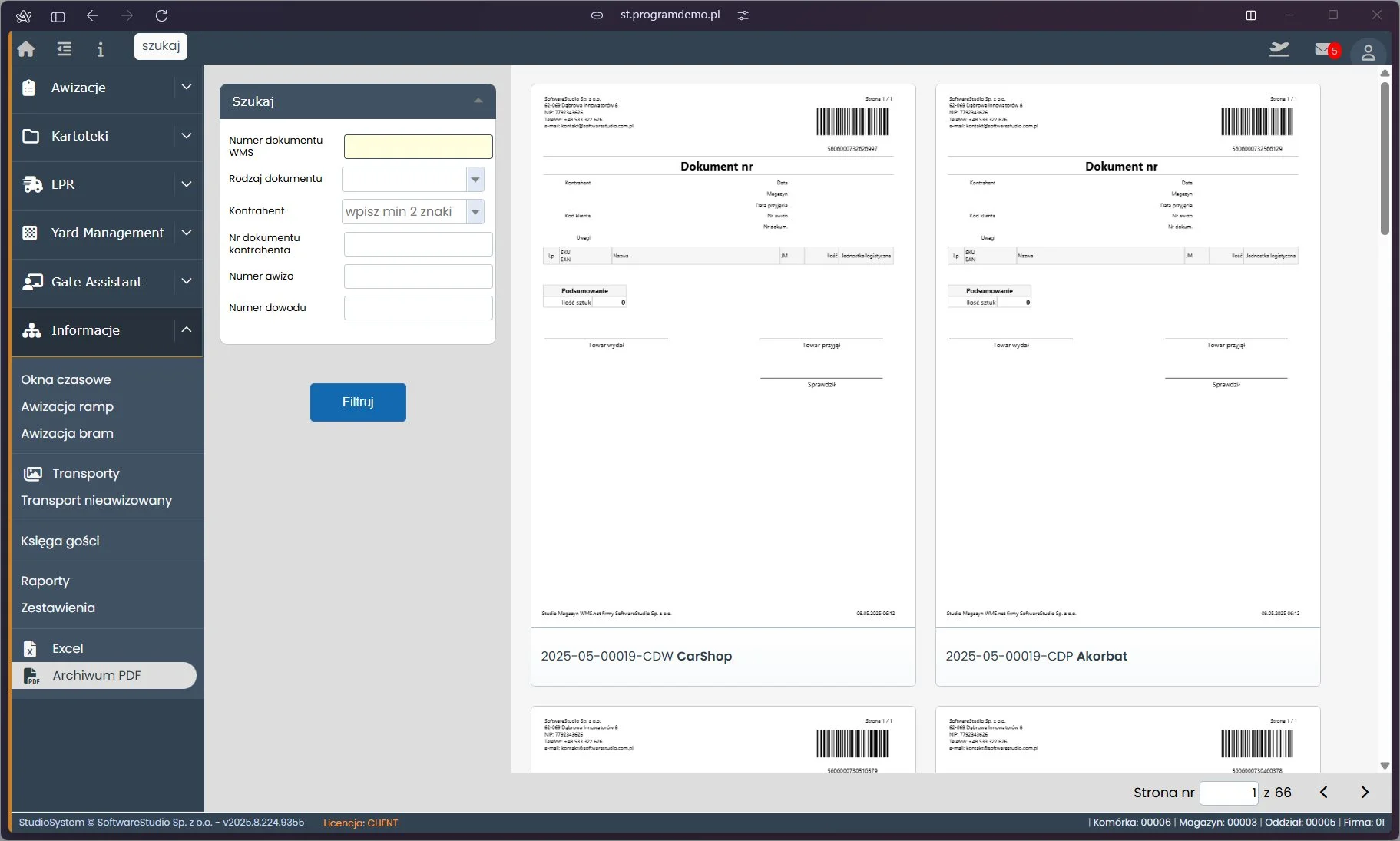 Awizacja dostawy w Studio VSS.net to ustrukturyzowany proces, który rozpoczyna się zanim pojazd wyjedzie od nadawcy i kończy się w momencie opuszczenia terenu obiektu przez kierowcę. Każdy etap jest rejestrowany w systemie, przypisany do konkretnego użytkownika i dostępny dla uprawnionych stron w czasie rzeczywistym. Dzięki temu magazyn wie z wyprzedzeniem, co przyjedzie, kiedy i którą rampą zostanie obsłużone.