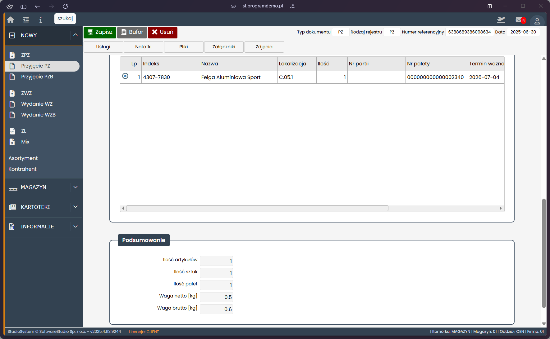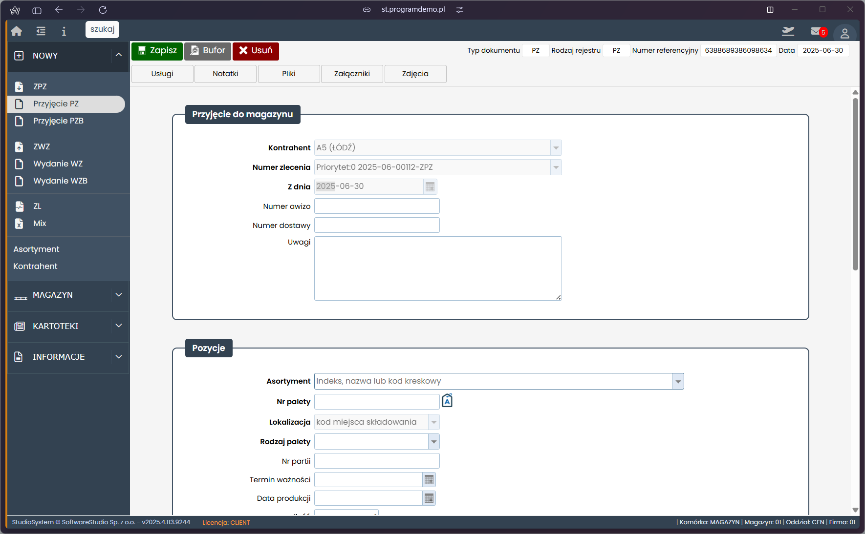Ekran „Przyjęcie PZ” w Studio WMS.net to kompleksowe narzędzie. Umożliwia ono dokładną i sprawną rejestrację przyjęć towarów. Zapewnia to aktualne stany magazynowe i efektywne zarządzanie logistyką wewnętrzną.