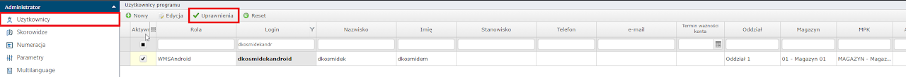 Zarządzanie uprawnieniami użytkowników w Studio WMS.net na Androida