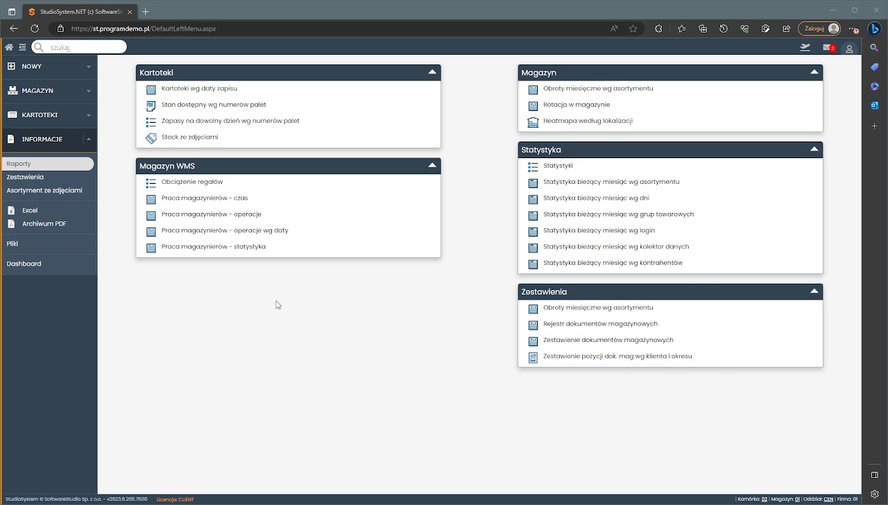 Sekcja Informacje w Systemie WMS.net